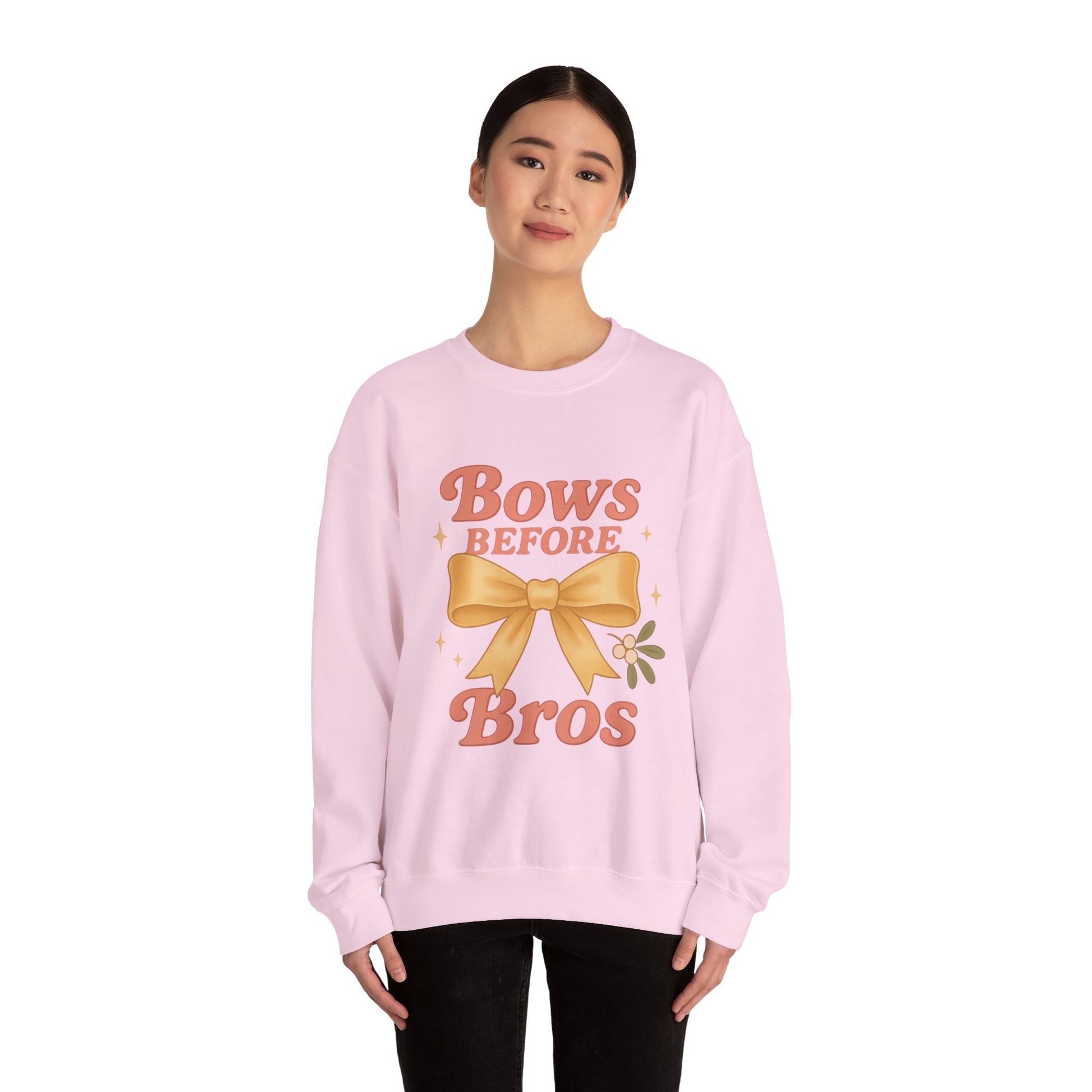 Bows Before Bros Christmas Sweatshirt | Soft Girl Christmas Crewneck | Cozy Festive Pullover for Women