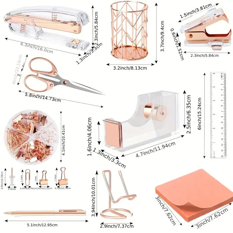Each piece is crafted in either rose gold or golden glow tones, blending elegance with functionality — because your desk deserves to be as beautiful as your goals.